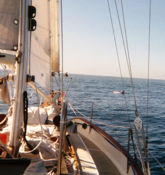 into the harbor. I was at the tiller while Warren alternatively