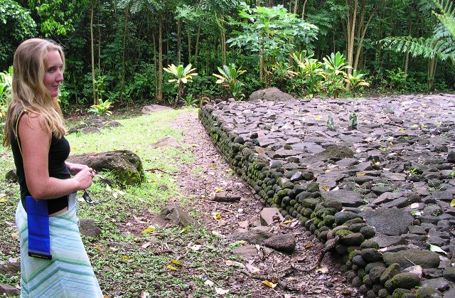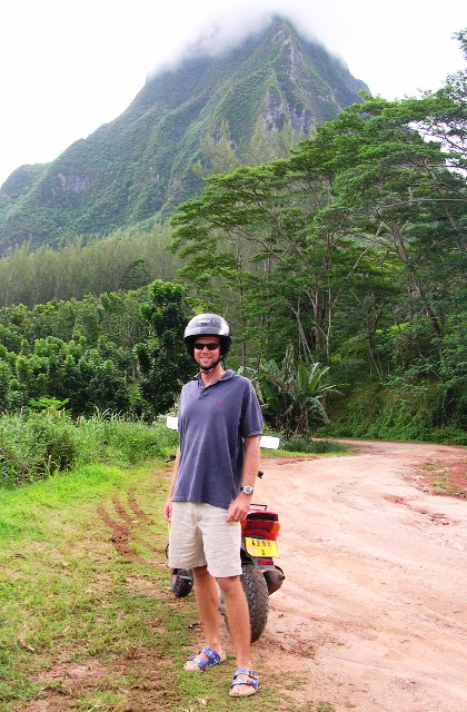 Islands (Steph) Moorea is a vortex that will not let you go. Despite the fact that our visas here in French Polynesia expire in only 12 days, we are still sitting here in picturesque Cook's Bay. The funny thing is that the weather has been so icky that we've not had much else to do besides exchange DVDs and share homemade soup with our new acquaintances on sv Oliva Hela out of Vancouver, B.C. Despite all the rain we've had, however, we have managed to get out to see the island when the clouds give us a break. Here's a recap: Scooters! Or rather, I should say, scooter! One of our favorite ways to see these tiny islands is to rent a scooter for a day and chug around to see all the sites. The scooter managed to climb a rocky dirt road up to see some marae, former dwellings of the ancient Polynesians.