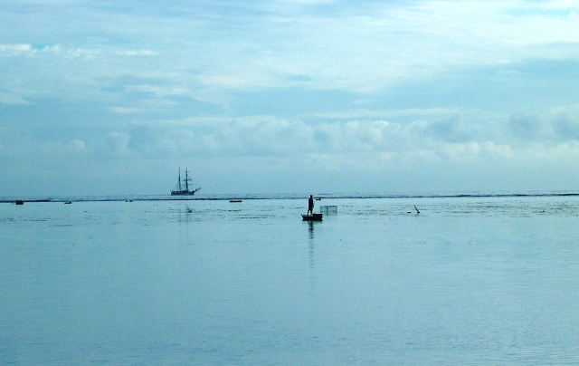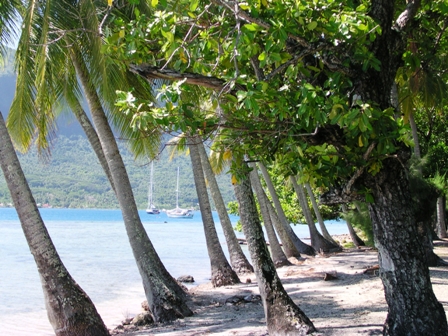 Yesterday we took our trusty little dinghy Bonobo on another long excursion. This time across the grand banks to Raiatea (about five miles each way). We tried to find a local chandlery that sells courtesy flags for our upcoming island groups but to no luck. We did meet several friends we'd not seen for awhile during our visit to the village of Uturoa. The ride looks like a very long trip on the chart but it's completely protected behind the reef, although you definitely don't want to get hit by a squall while heading upwind between the islands.