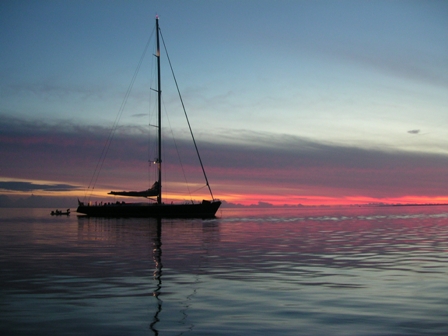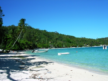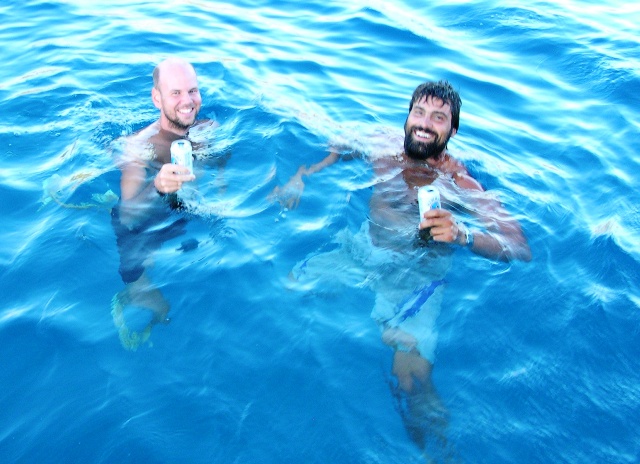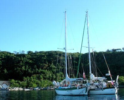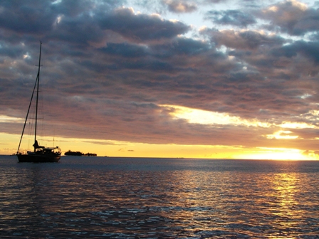 Islands (wojo) Yesterday was one of those days where I wish I’d simply stayed stayed in the forepeak and finished reading Confessions of a Shopaholic. Things started out innocently enough. We dropped the hook the day before behind motu Topua which is one of the most gorgeous and calm spots we’ve found yet. Around noon we pulled up the hook to head around the north of the motu to take on fuel at the dock near Vaitape. As soon as we were out of the lee of the motu the blast of the thirty knot maara’mu winds hit us. Didn’t I read something about this in my weather faxes last night? No big deal, we’re getting more accustomed to being in a lot of wind most of the time and besides we were completely within the lagoon. Still in lots of wind we dropped the hook in eleven fathoms near the fuel dock and I took the dinghy over for a few gallons. It was not fun loading the full jerry jugs into the dink with three foot wind waves at the sea wall. We transferred the fuel and were quickly back underway, this time back to the south of the island for Bloody Mary’s to take a mooring. Picking up a mooring would allow us pull lots of our heavy 3/8’’ chain back to the secondary storage locker to keep the weight off the ends of the boat (better performance and easier on the crew). After spotting an available mooring, we cruised in and were right on track. Our usual procedure is to have Steph at the helm and to put the boat alongside the ball to windward. Everything was going fine in the 30-35 knot gusts and I grabbed the pickup line for the mooring. Mico then started to drift away a bit and I was holding onto the line with the boat hook like “desperate Dan.” In lighter winds, if the pickup doesn’t go perfectly well I can usually manhandle things to get at least one line on the boat and then make some adjustments. Not this time … The next thing I knew, the boat hook has been wrenched from my hands and is disappearing into the deep. It’s wood, so I knew that I'd get it back … eventually. I then noticed that the boat was heading right over the mooring, and I tried to motion for Steph to go to neutral but it was too late … BAM!! I knew exactly what had happened from the buzzing sound of the low oil pressure alarm. We just sucked the mooring line into the propeller and it killed the engine stone dead. I was thinking, "OK, now what?!” I did have a backup plan, right? Knowing that we were only seconds from getting blown hard aground right on the nasty reef only twenty meters away, I ran to the bow and dropped 40 meters of chain faster than anytime in my life. I was hoping this would hold us while my mind went to the other matter of the line in the prop. In the next thirty seconds, I put on my dive mask and fins, grabbed a good knife and dove over the side to assess the damage. I cut the float pickup line free, and the boat started moving away at a good clip in the 30-knot breeze. I quickly jumped in the dinghy and tied her alongside as tightly as possible. With Steph at the helm we were able to make just enough steerage with the little 5HP Tohatsu (glad we fixed it earlier in the week!) to move the boat back to the mooring to get a line on. This took about four or five tries and we knew we weren't out of the woods yet, but at least the anchor was holding. Eventually we tied up to the ball and I fretfully started to check out the engine. Luckily, only the pickup line had wrapped, and we had been saved from total disaster by a plastic milk jug. The worst wrap one can get is when a small diameter rope gets wrapped extremely tightly. The wrap itself kills the engine, and in the process perhaps the gearbox and shaft as well. A bad wrap can mean having to slip the shaft to get the line out. A really bad wrap can pull the engine from its mounts (just ask our friends on R Factor what can happen). In this case however, the line was attached to a milk jug serving as a float that slammed into the aperture for the prop with enough force to shut things down before more damage could occur. In the end, the only damage was to the zinc, which needed replacing anyway. With relief, we settled back for some serious decompression. Ha Ha! The story doesn’t end here, however. As we were having our own little debacle fighting the mooring ball, a big cruising catamaran was departing Bloody Mary’s. Not more than an hour later we started getting reports of a cat named Sylvester which was now sinking! We knew it was the same one and got on the VHF to let people know when they’d departed – it seemed that although it was known they were now sinking, no one knew exactly where they were at the moment. My immediate paranoid thought was that they’d just headed out of the pass, probably lost power and gone on the reef – outside. If this was the case, someone with some expertise needed to get out there and start looking for people in the water. I talked to Vito on Wanderer and we decided that I’d issue a pan-pan (non-life threatening distress call) to the local authority. I chatted with the gendarme, in French, for about fifteen minutes on channel 16 letting them know the situation. Eventually they just got more and more confused and finally asked me, in English, “uh sir, what do you want?” The eventually seemed to understand, but didn't seem to care much. Luckily, another friend on sv Tandem contacted me just that moment to let me know that they’d actually seem Sylvester heading north ‘round motu Topua just an hour ago. This was good as it meant they were not heading for the pass and were still inside the lagoon. Ted decided to take off in the 30-knot winds and head around the other side of the motu and try to find them. There were numerous break-ins during our conversations with people on the north side of the motu letting us know that they could see all the way down south and that this was a waste of time and just a wild goose chase. Ted sped away anyway. Half and hour later I received a call fr