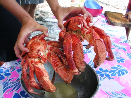 The mythical coconut crab After my dive, Warren and I rented bikes and explored this small section of the atoll. We had lunch near a quay where we watched kids fishing and basically mutilating anything they managed to catch (wojo: the kids did seem to eat most everything they caught, on the spot, eventually). Animals are not precious to the people here, that is for certain.