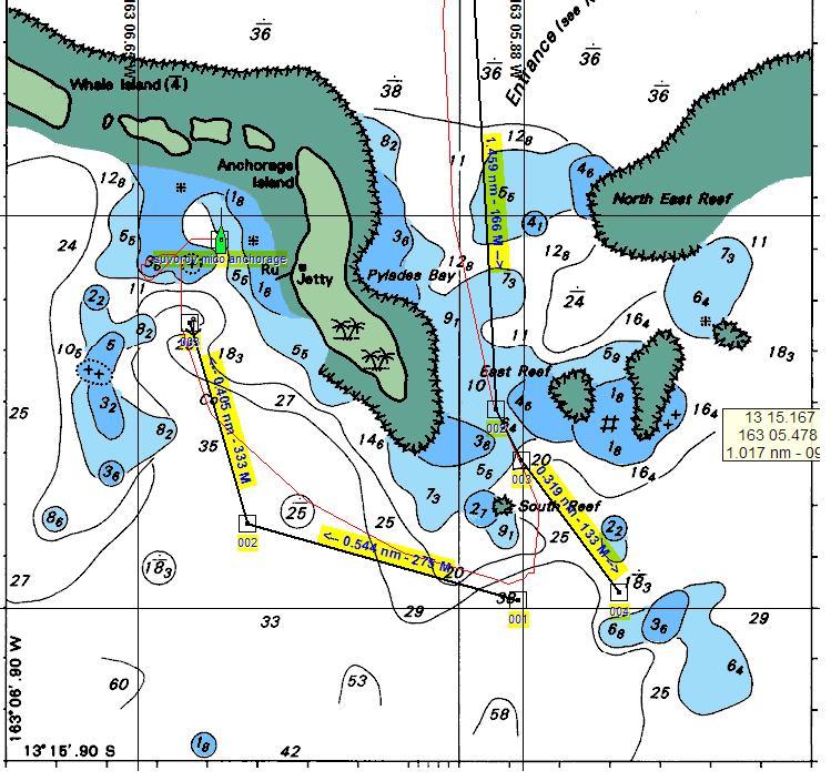 Chart plan of the Suvorov pass (the anchorage is just to the left of Anchorage Island)