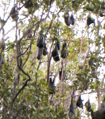 Flying Foxes waking up ... Back at the yacht we've started moving ahead with our land travel plans. We picked up tickets to Hobart in Tasmania -- from there who knows?