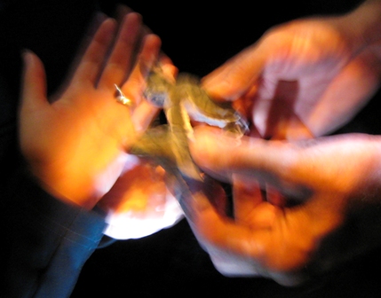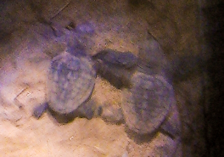 Australia (Steph) Tonight we visited Mon Repos, a protected sea turtle rookery near Bundaberg. From November through May, sea turtles make their way up the beach and dig out holes in the sand where they lay their eggs. The hatchlings burst forth out of the sand about eight weeks later. It being near the end of the season, we were fortunate enough to help some loggerhead turtle hatchlings work their way down to the sea.