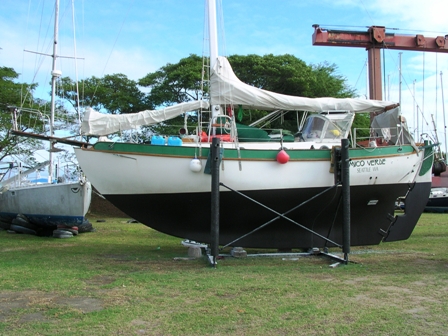 Vuda Point, Fiji (Wojo) The amount of work we've done this time around at Vuda has been astounding. Can't believe we've already been here five weeks. The biggest entry on our list was our very long overdue bottom painting. But this was to be no regular sand-a-little-and-just-paint-over-all-the-old-stuff kinda project. I was determined that we should do her right this time. This meant first hiring a team of people to do a nasty job.