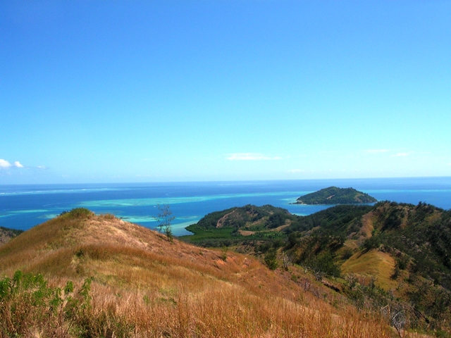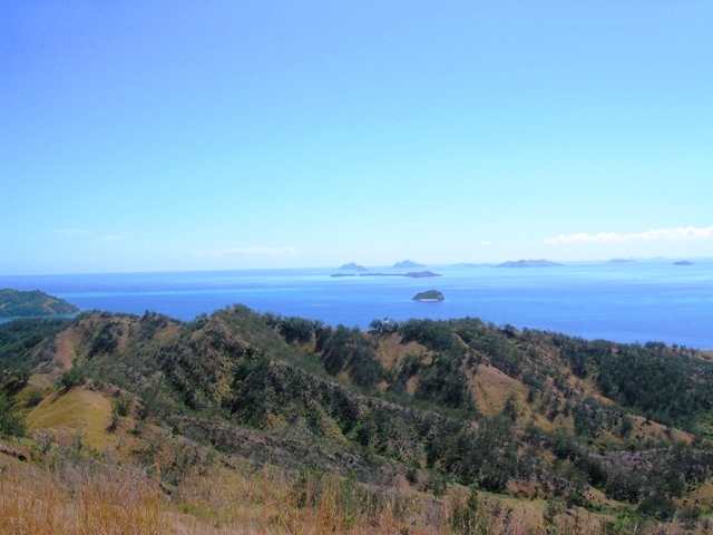 Malololailai, Fiji (Wojo) We'd previously read in the Lonely Planet that there was a great hike to be had on Malolo (the bigger island next to Malololailai, accessible by land at low tide). After asking around the Musket Cove Marina we were very disappointed, however. The marina staff told us was that we needed to first come inside and take a slip and then someone would take us by boat to the village of Solevu where we could start the trek. The Lonely Planet described a 1940s area lookout built by the American army during WWII. They also mentioned that it had some incredible views of the Mamanucas isles. We were determined to get to the top of the lookout by hook or by crook.