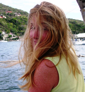 by perching on the windward edge and bracing my feet on the leeward