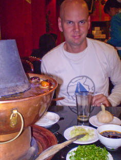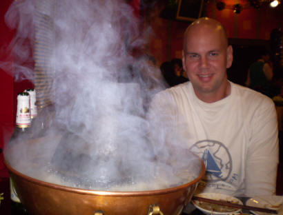 giant vat of broth, which was sitting over hot coals, bubbling away. We started