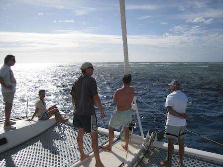 Warren, Irene from Moose and Anne from Mystic Rhythms, enjoying the downwind sail back to Lizard Island after our day of diving the reef The following underwater photographs are the work of Richard Clack.